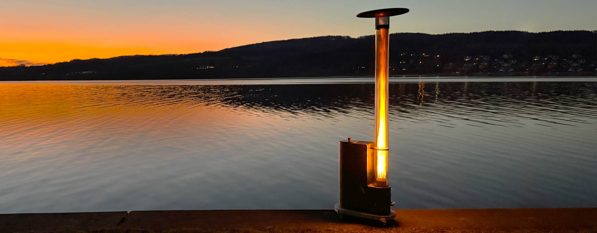 Nachhaltiger Pellet-Heizstrahler für Aussenwärme und Ambiente